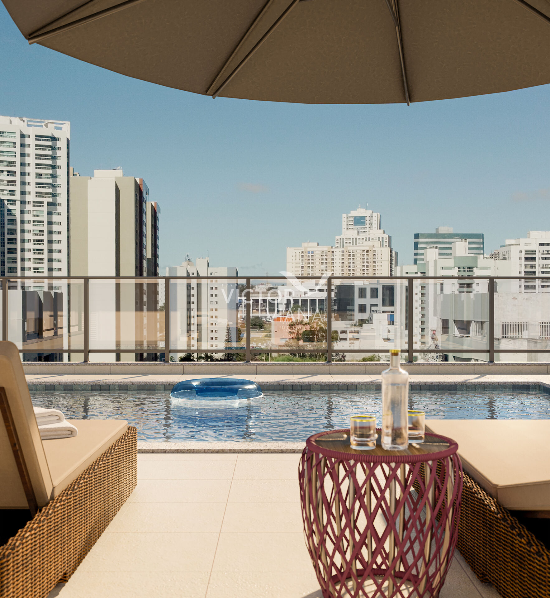 Piscina na cobertura com deck
